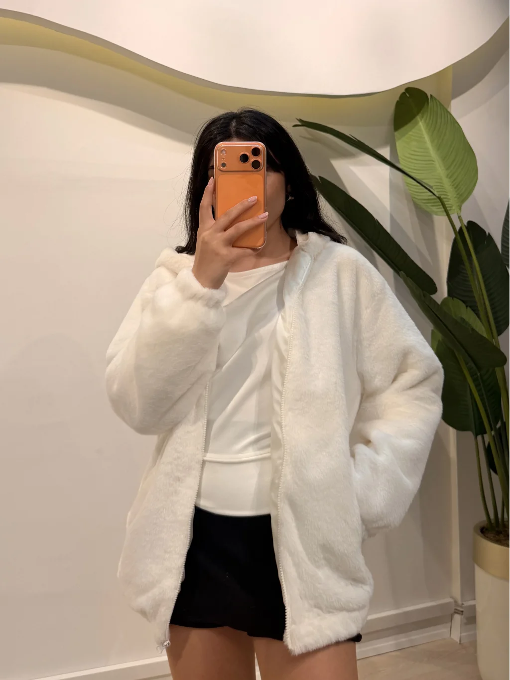 Sıcak ve stil sahibi: Astarlı Peluş Ceket - Ekru.