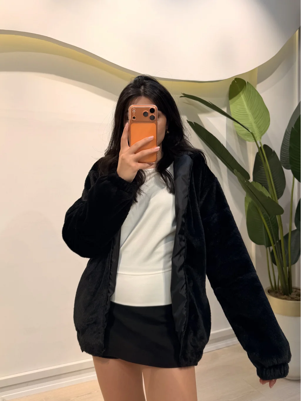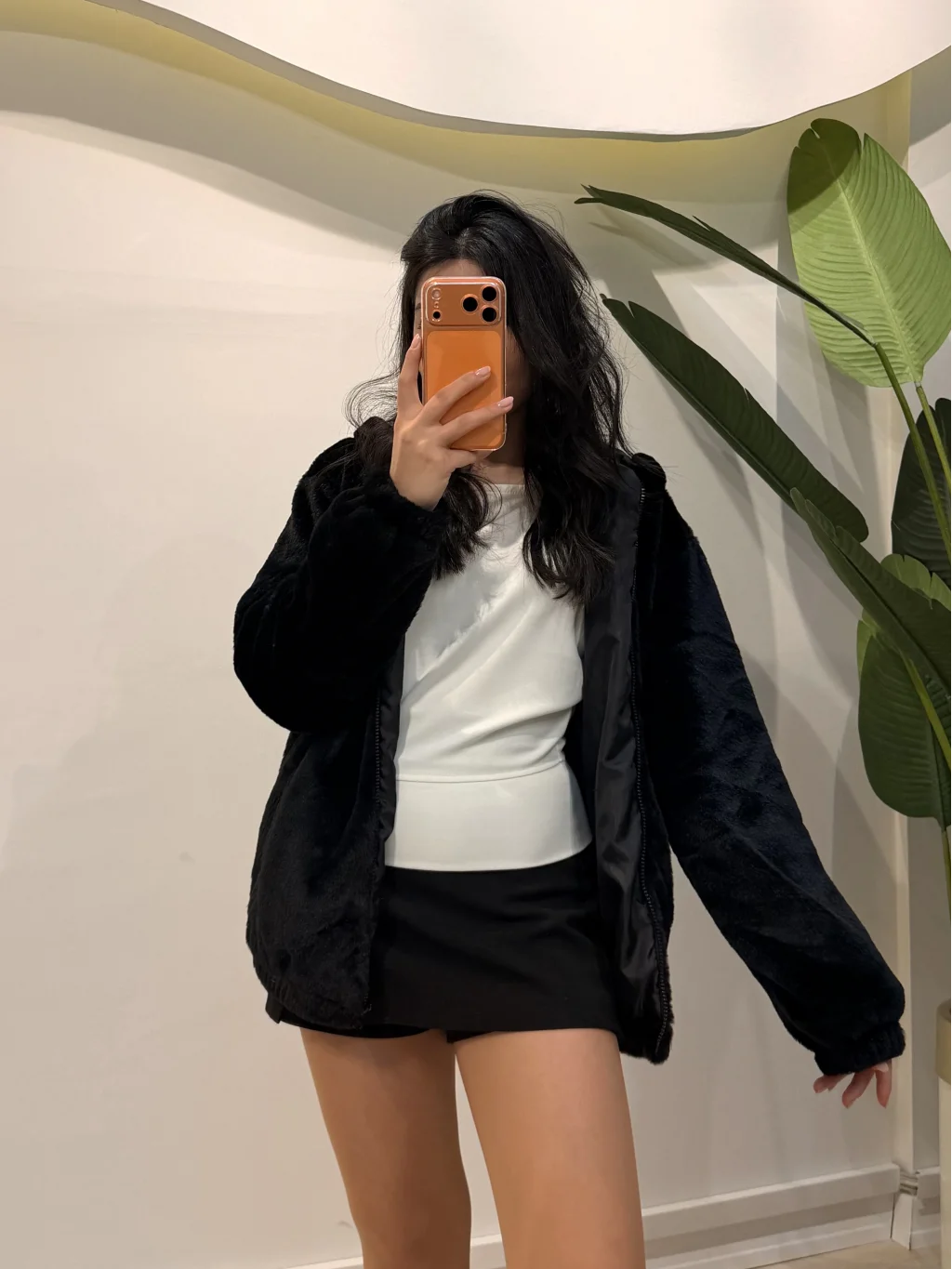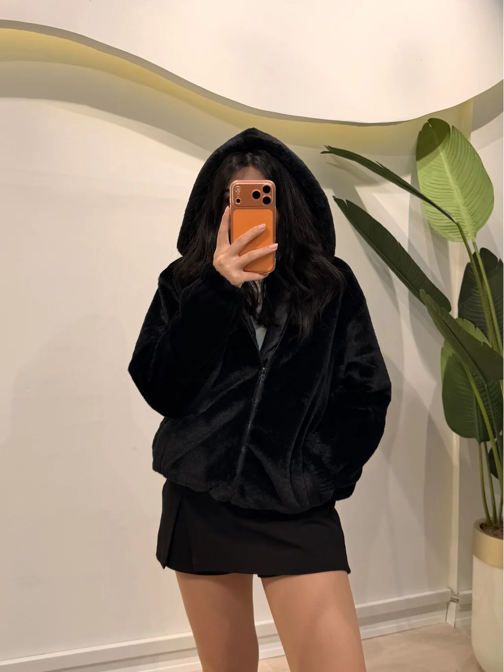 Sıcak ve stil sahibi: Astarlı Peluş Ceket - Siyah.