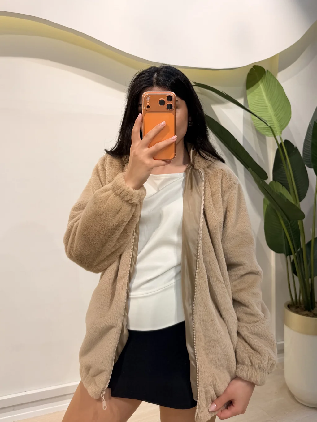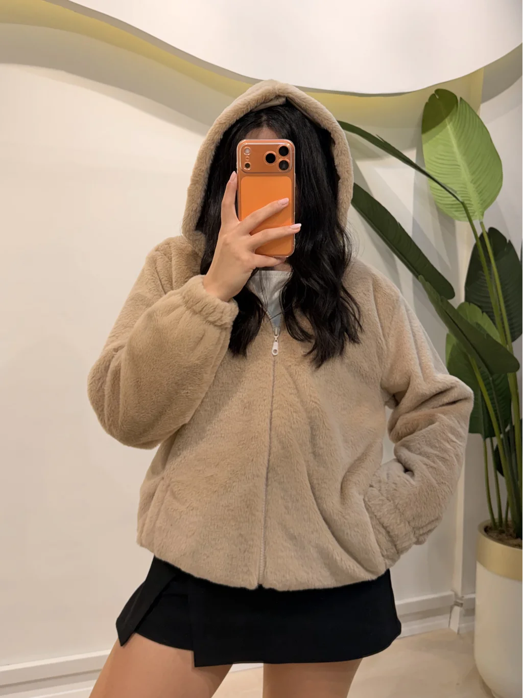 Sıcak ve stil sahibi: Astarlı Peluş Ceket - Vizon.