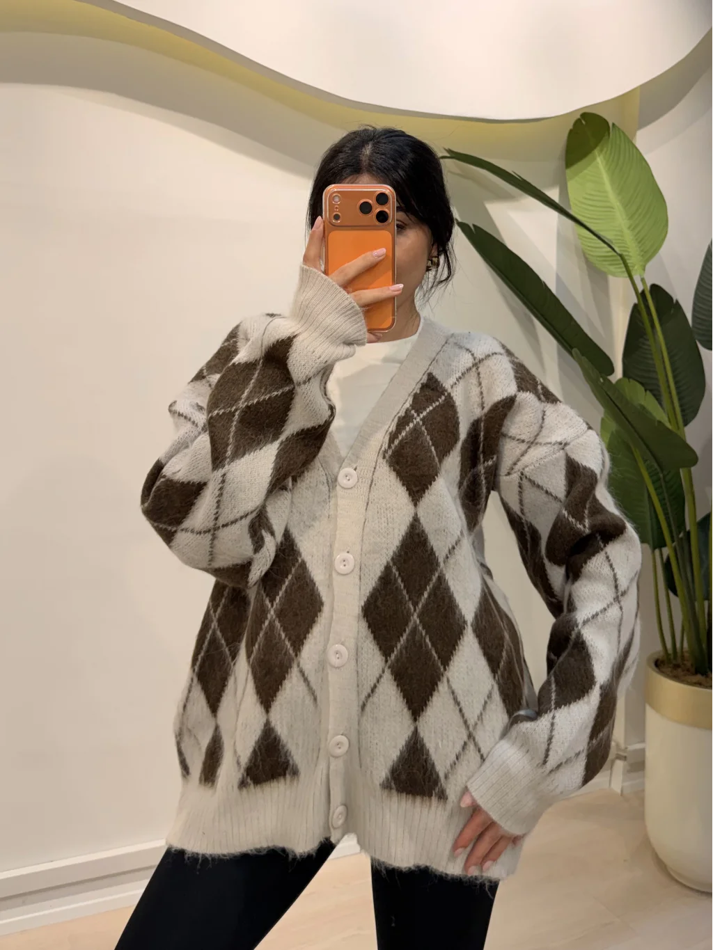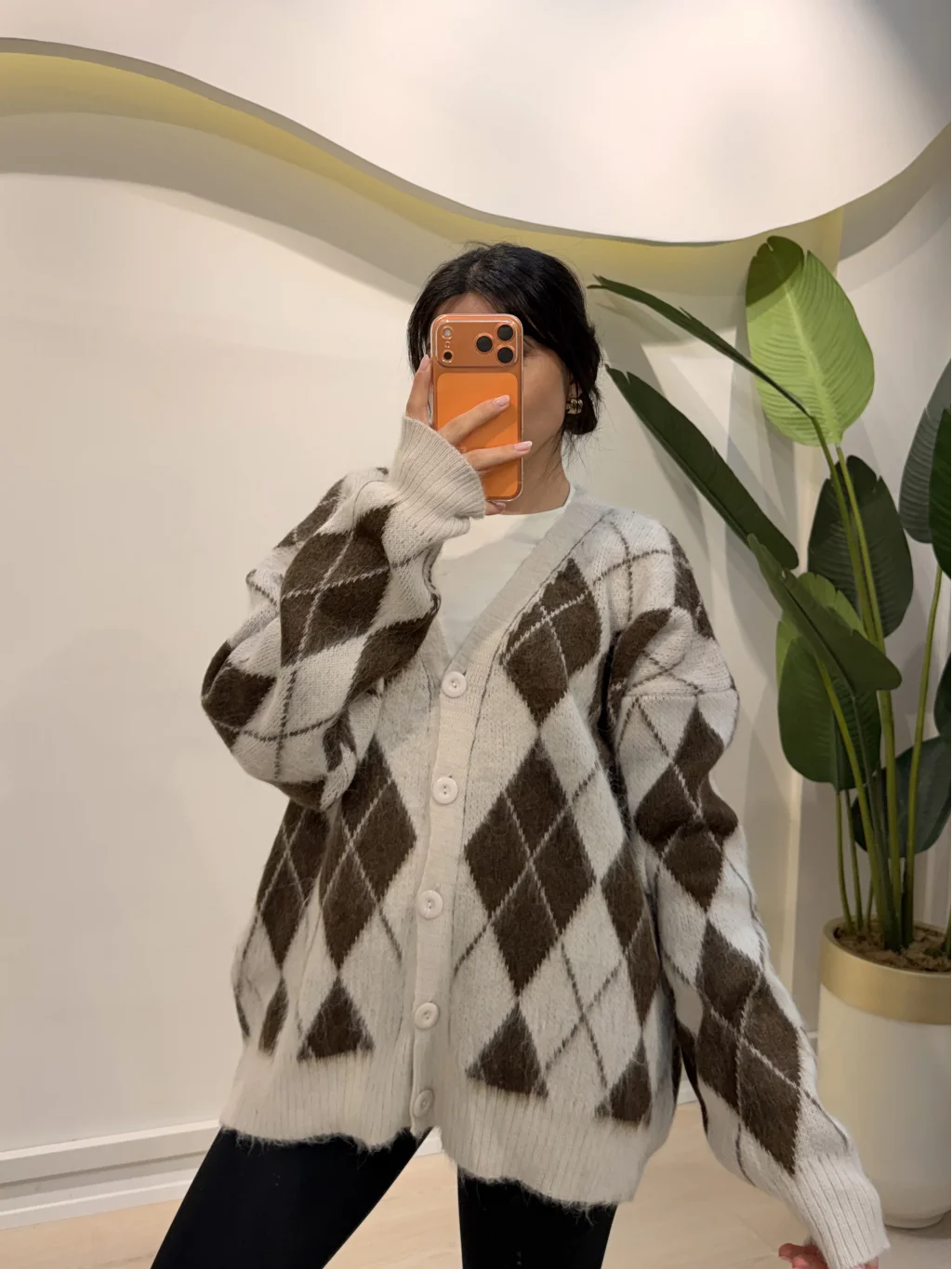 Baklava Desen Salaş Hırka - Beyaz, kışın şıklığı ve sıcaklığı bir arada sunar.