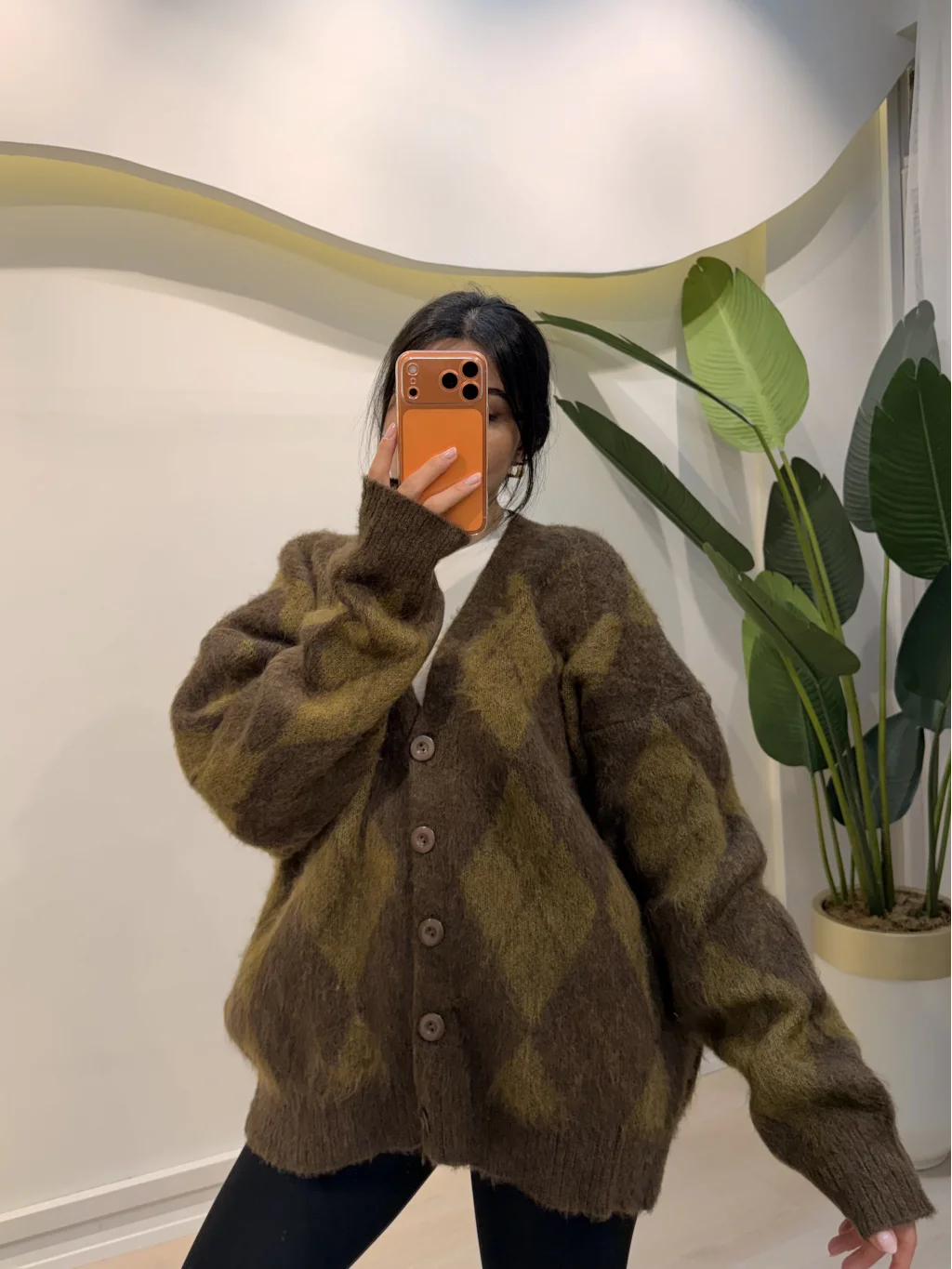 Baklava Desen Salaş Hırka - Kahve, kışın şıklığı ve sıcaklığı bir arada sunar.