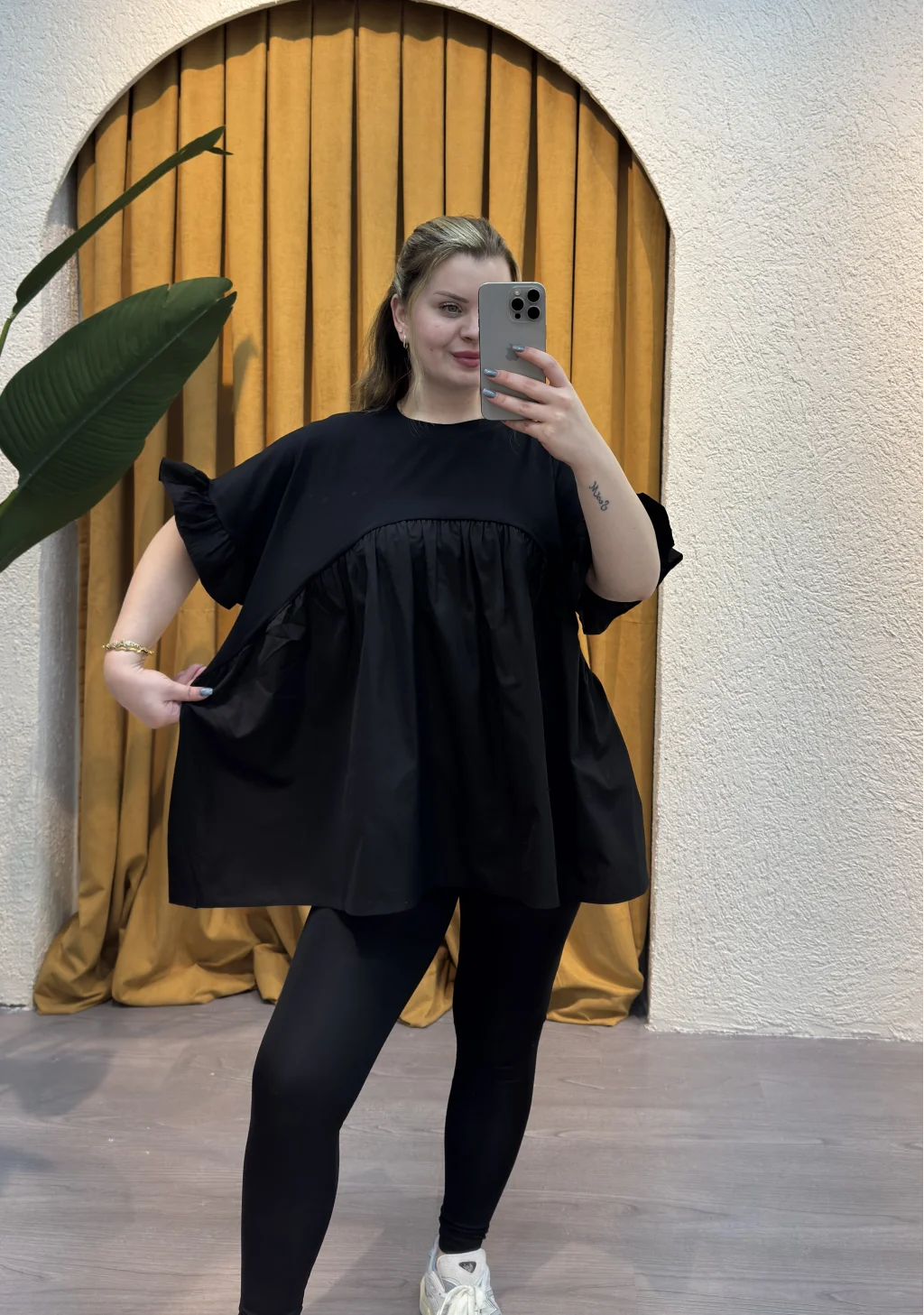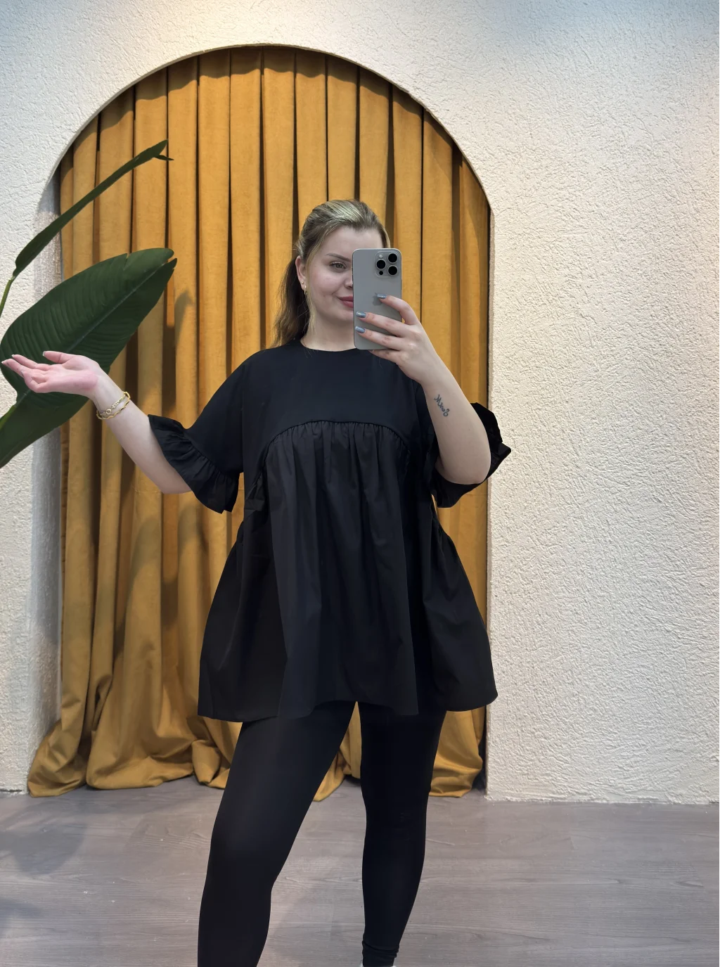 Bella Poplin Siyah Bluz, şıklığı ve rahatlığı bir arada sunan bir parçadır.