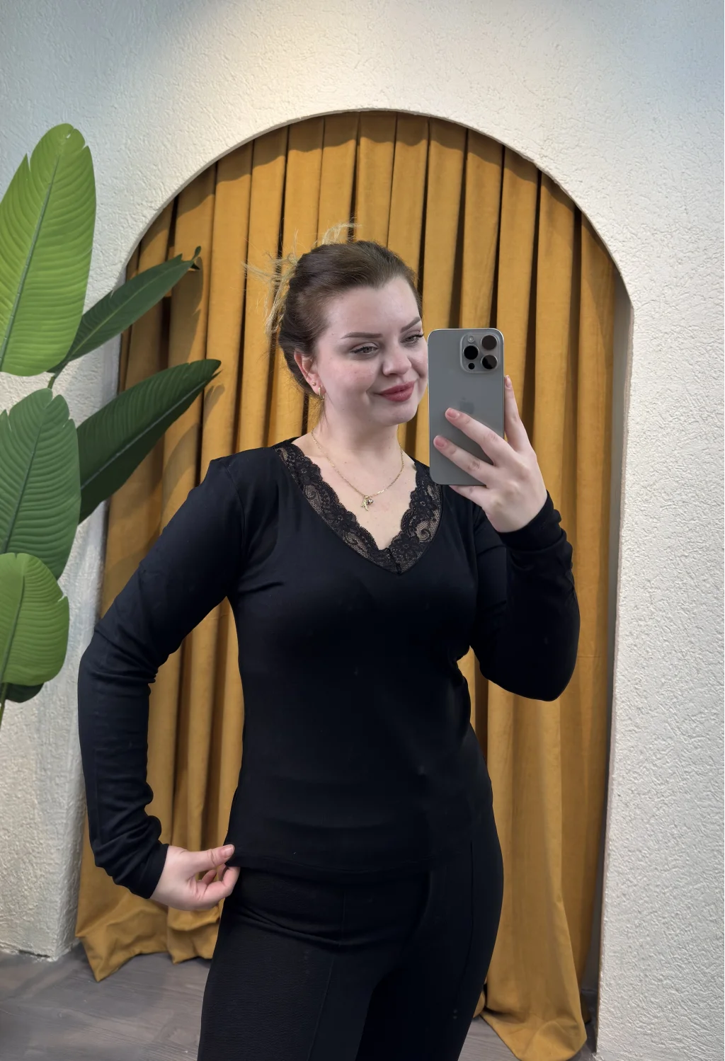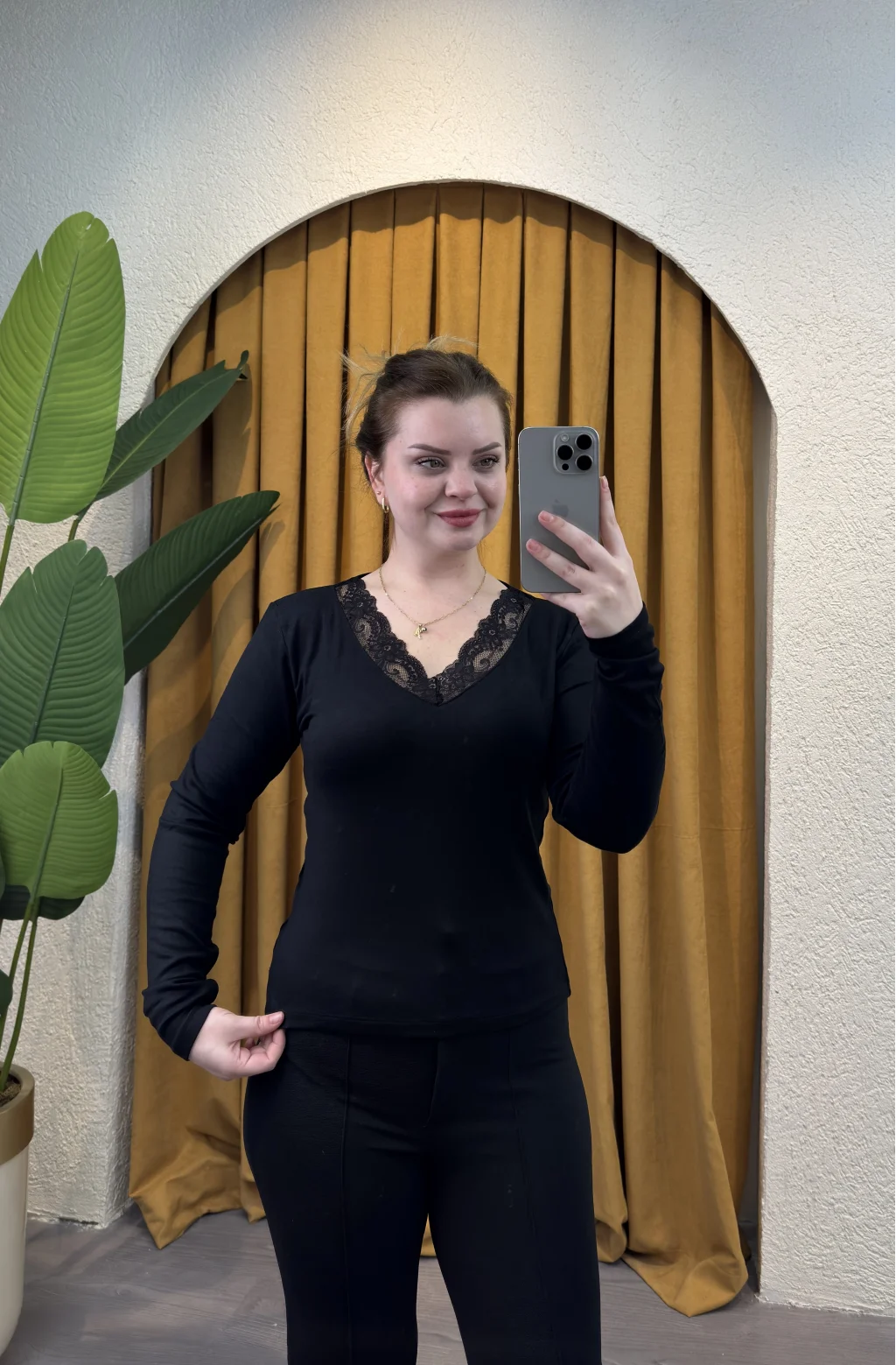 Şıklığı ve zarafeti bir arada sunan Kare Moda Dantel V Yaka Bluz, gardırobunuzun vazgeçilmezi olmaya aday!
