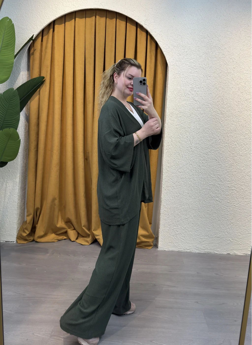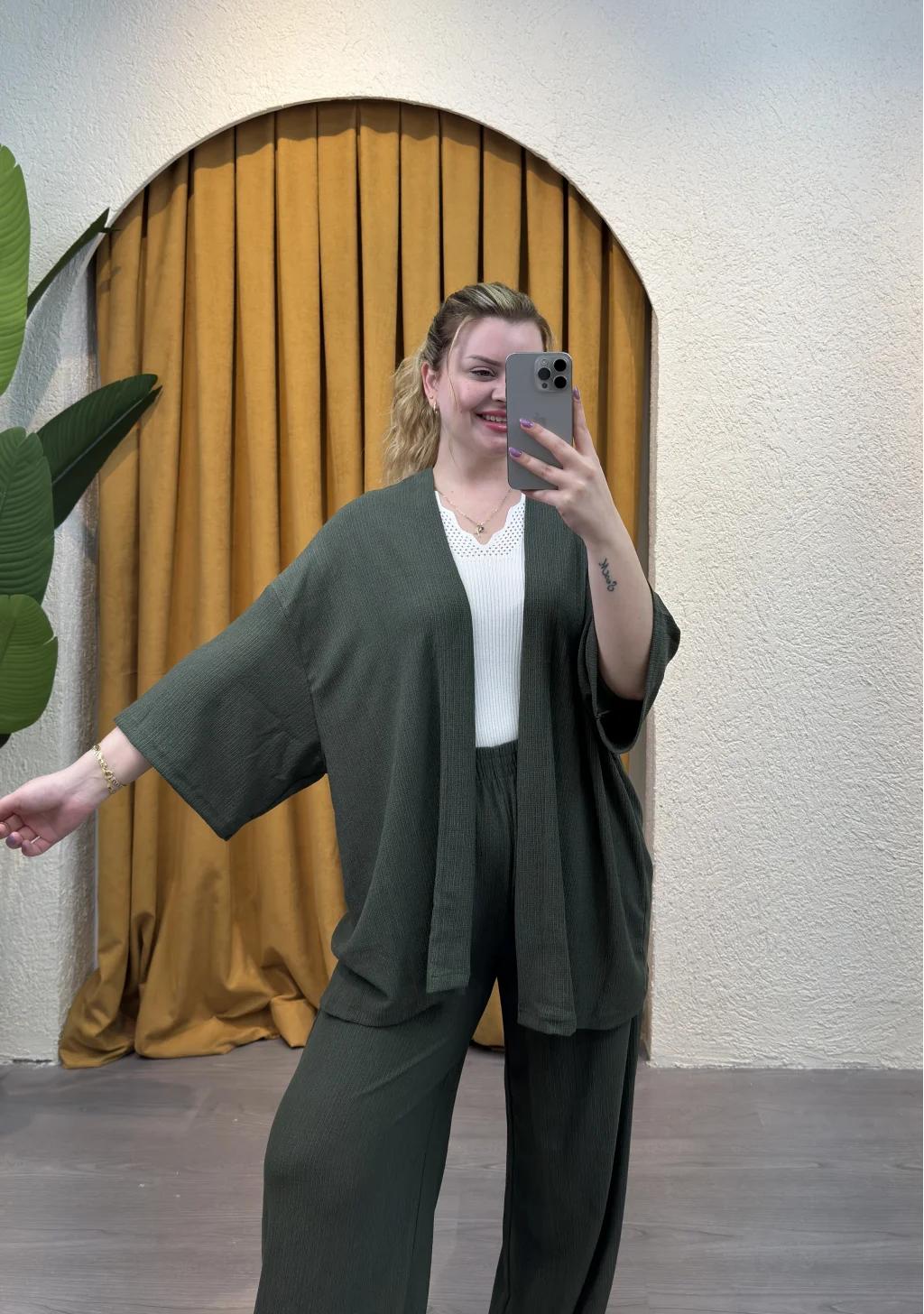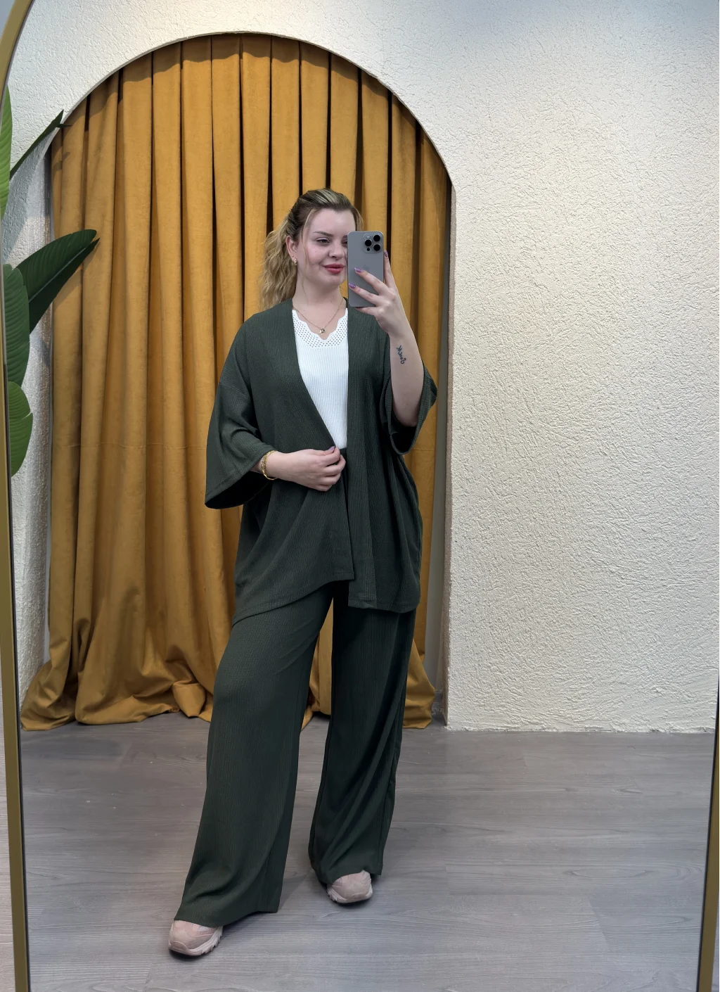 İçinde bulunduğumuz mevsime uygun şıklığı ve rahatlığı bir arada sunan Kare Moda'nın eşsiz tasarımı İkili Bürümcük Kimono Takımı ile tarzınızı konuşturun.