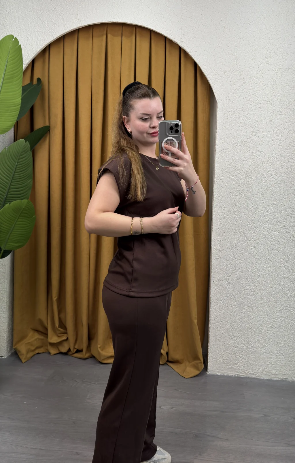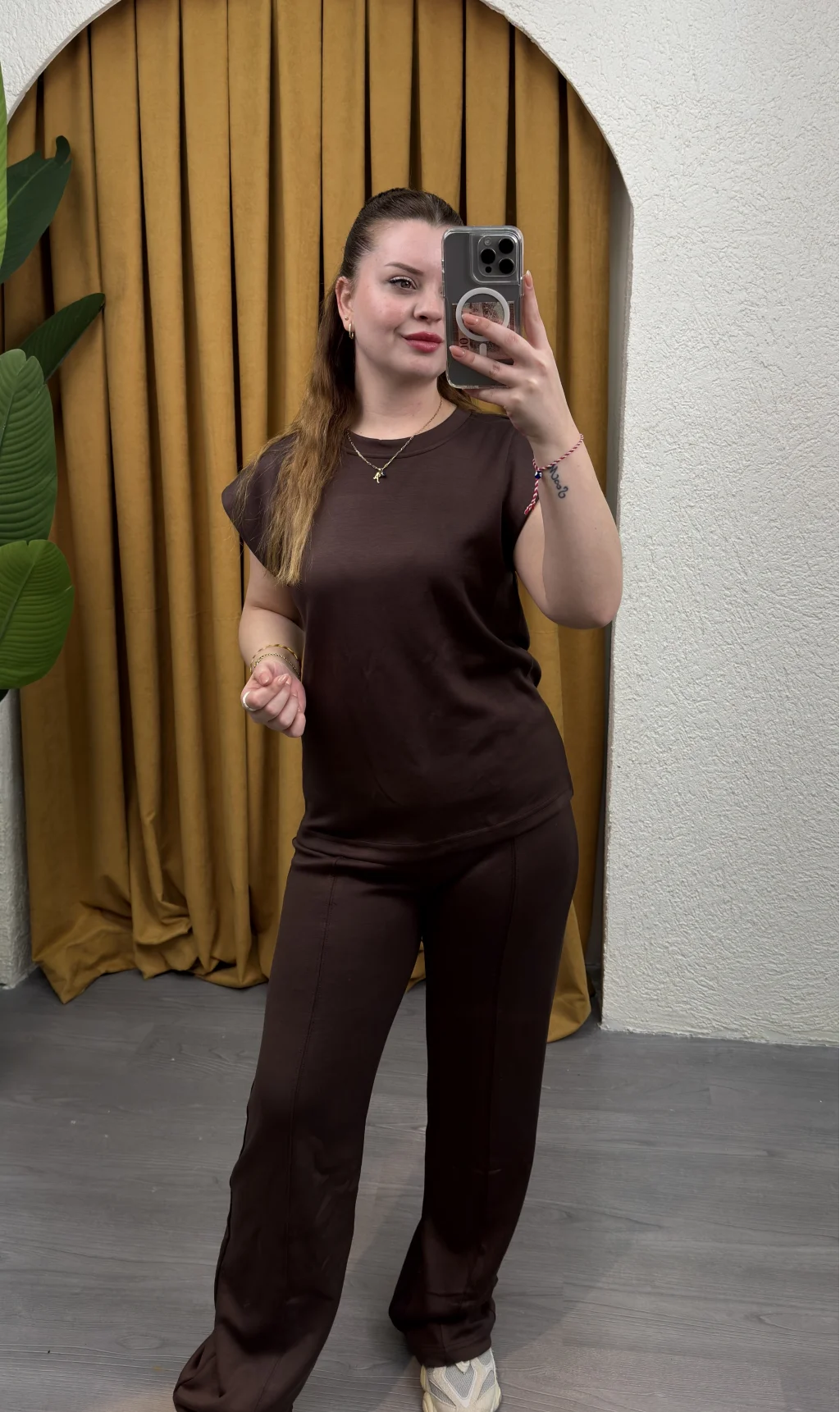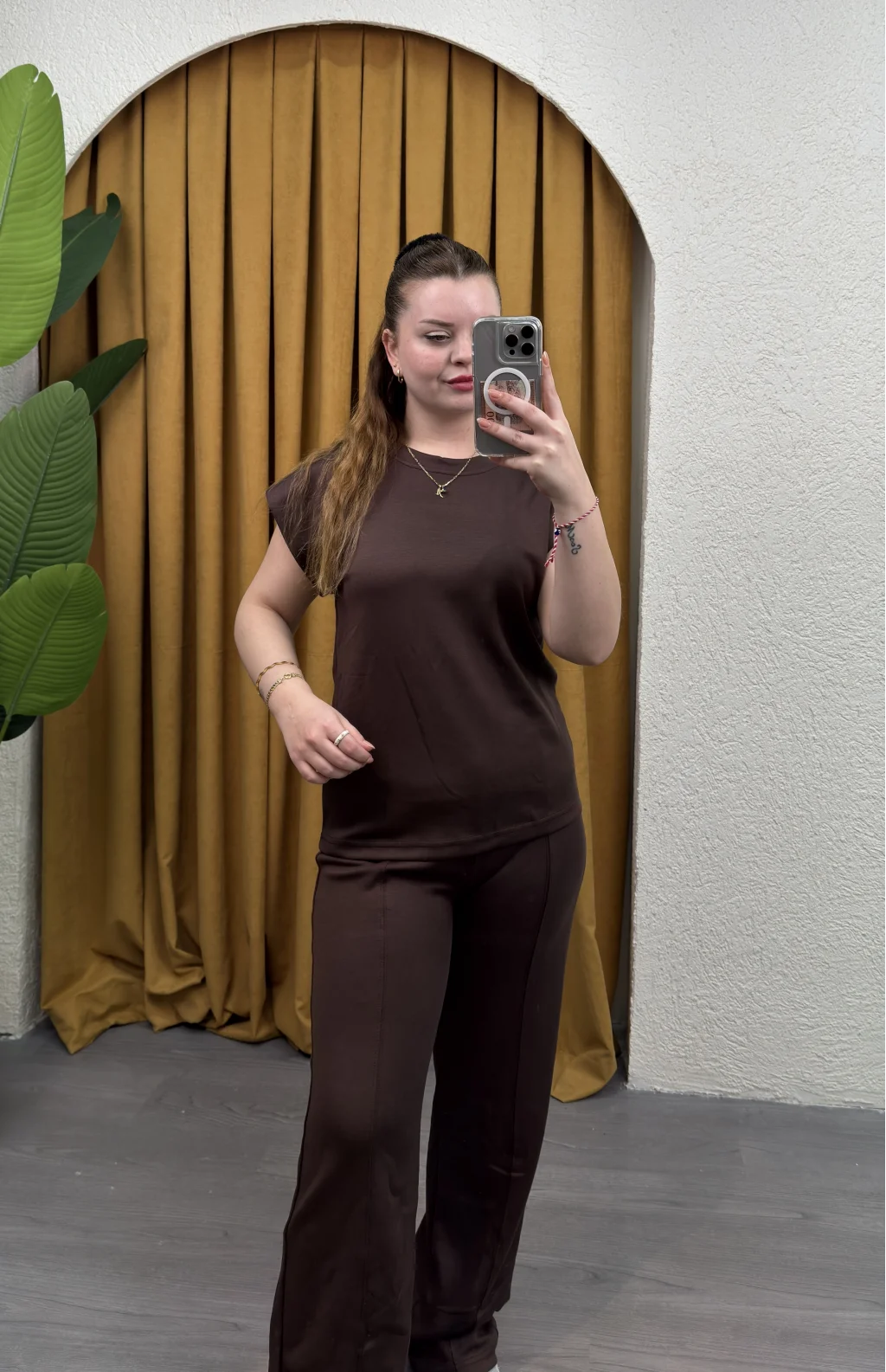 İki parçadan oluşan takım, şıklık ve uyumu bir arada sunar.