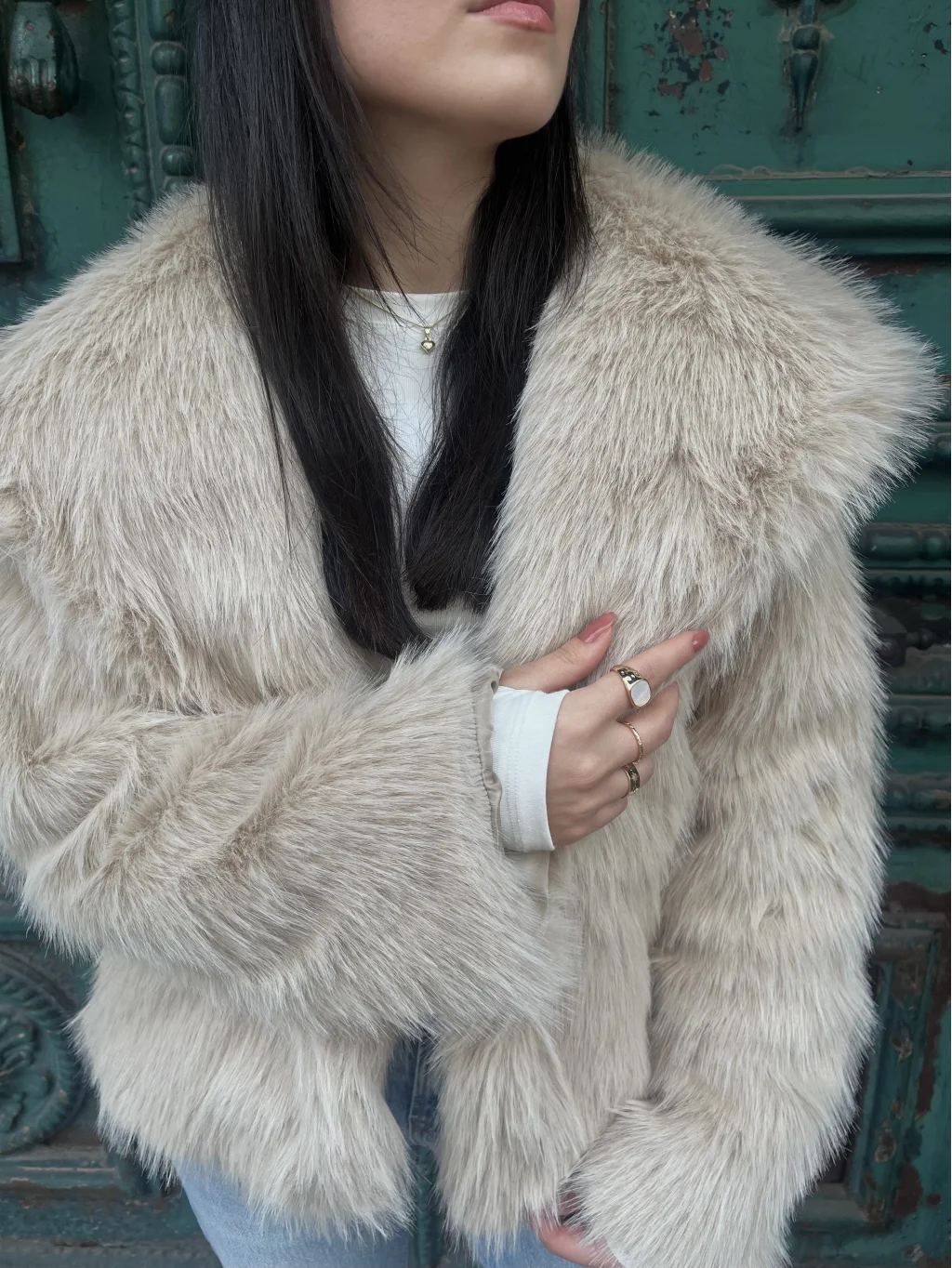 Oversize Kürk Kaban - Ekru