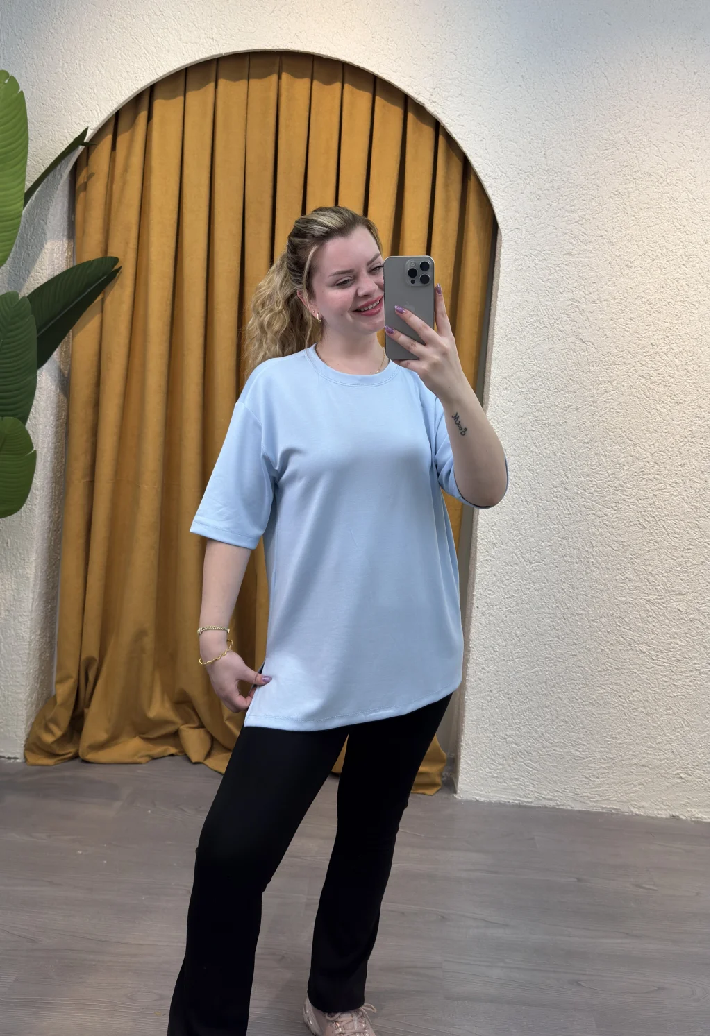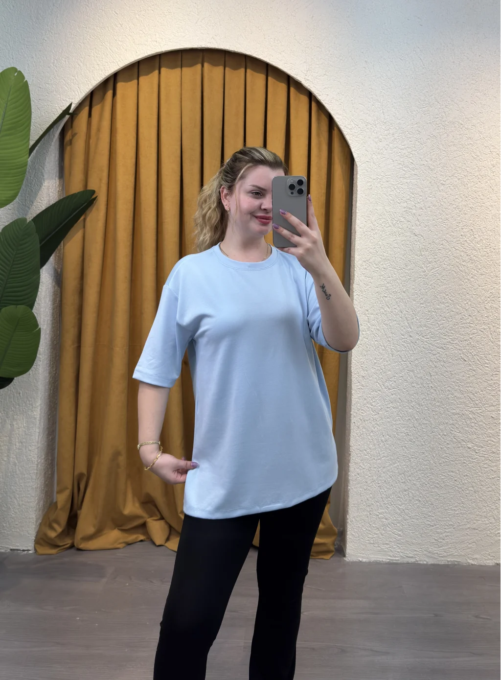 Oversize Yırtmaçlı Modal T-Shirt - MAVİ