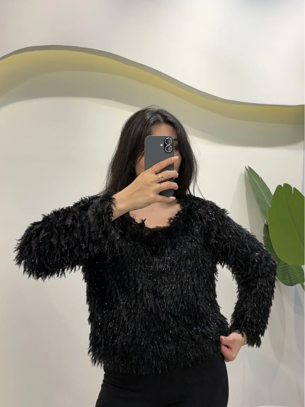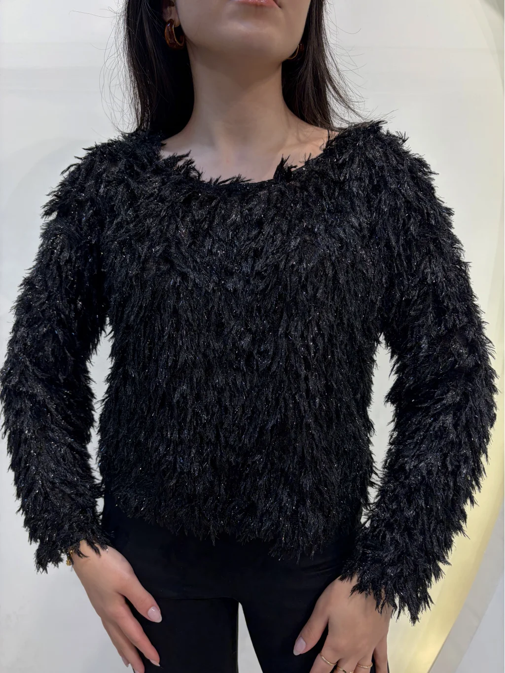 Simli Saçaklı Bluz - Siyah