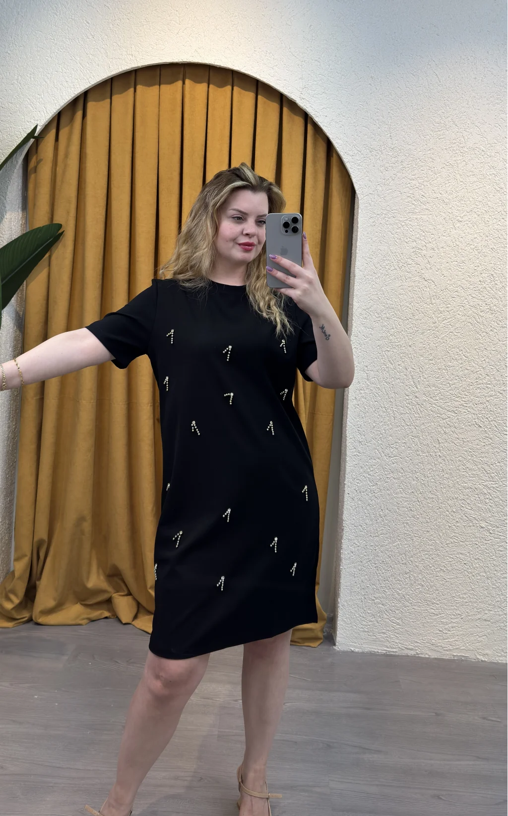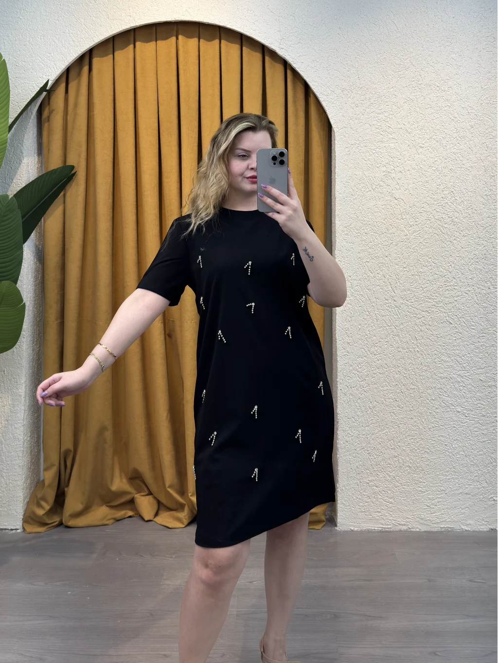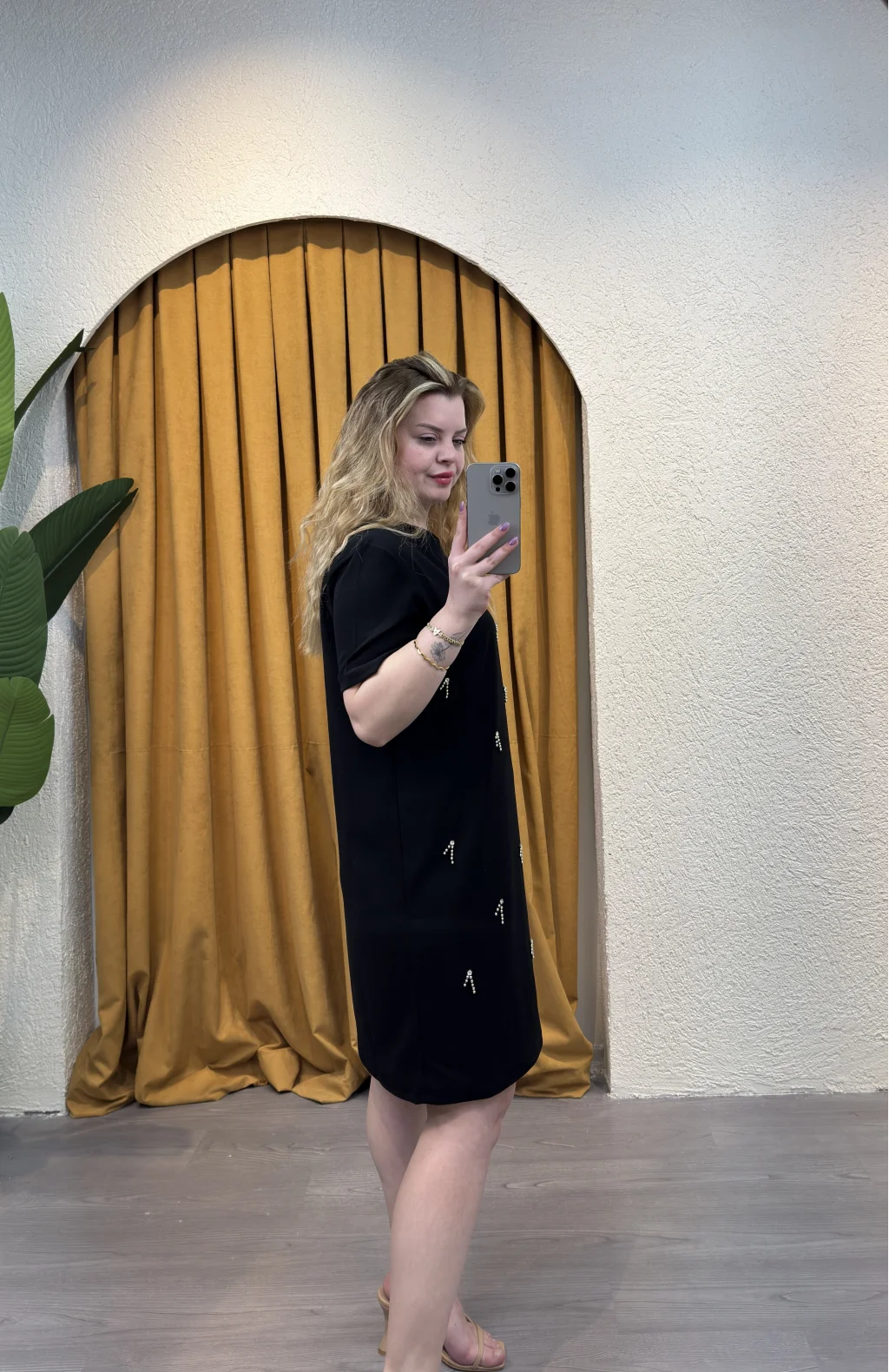 Şıklığı ve zarafeti bir arada sunan Taş Detaylı Siyah Elbise, özel davetlerde ve özel günlerde şıklığınızı ön plana çıkaracak.