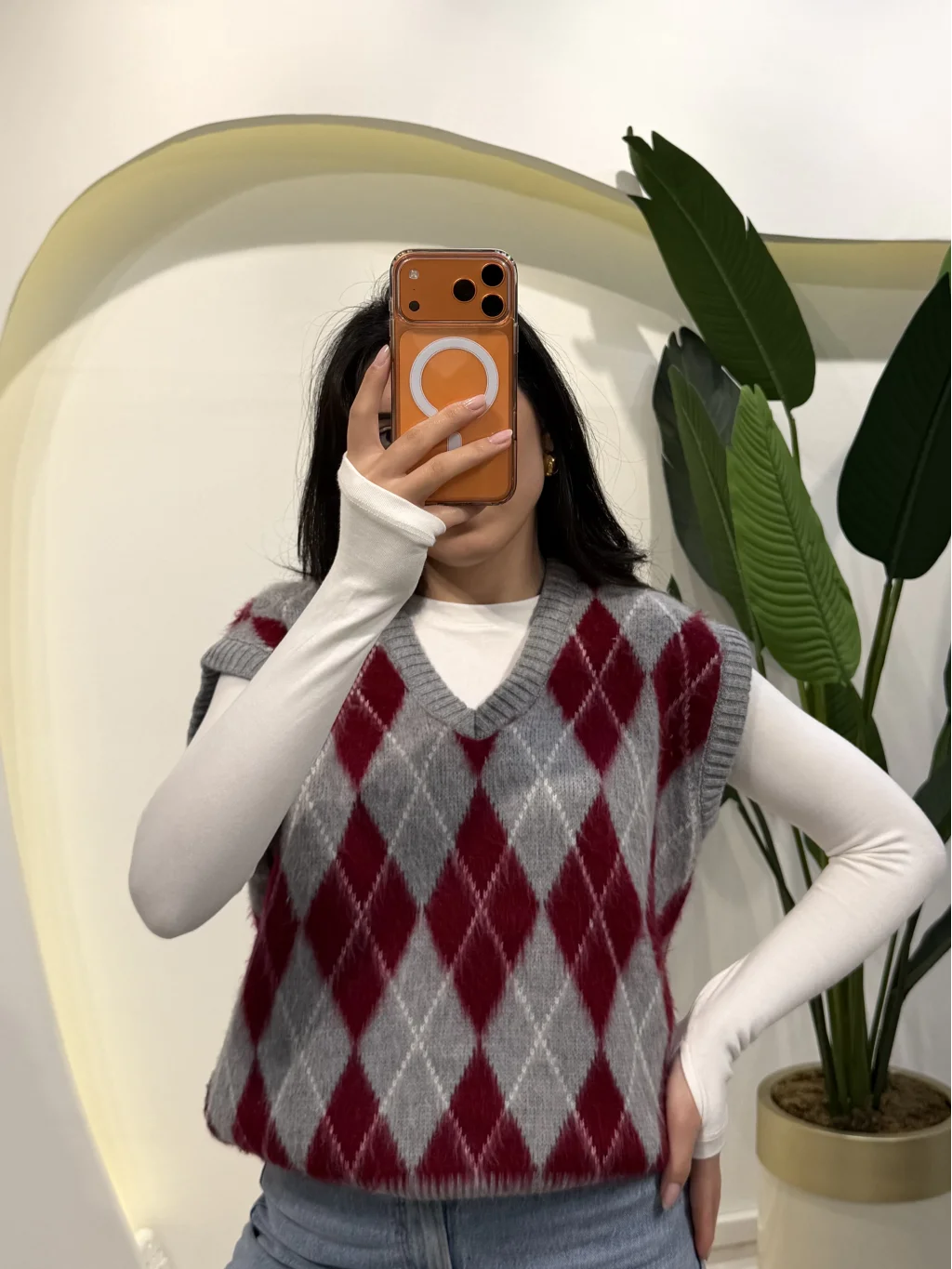 V Yaka Baklava Desen Süveter - Gri, şıklığı ve rahatlığı bir araya getirir. Soğuk havalarda sizi sıcacık tutacak bir seçim!