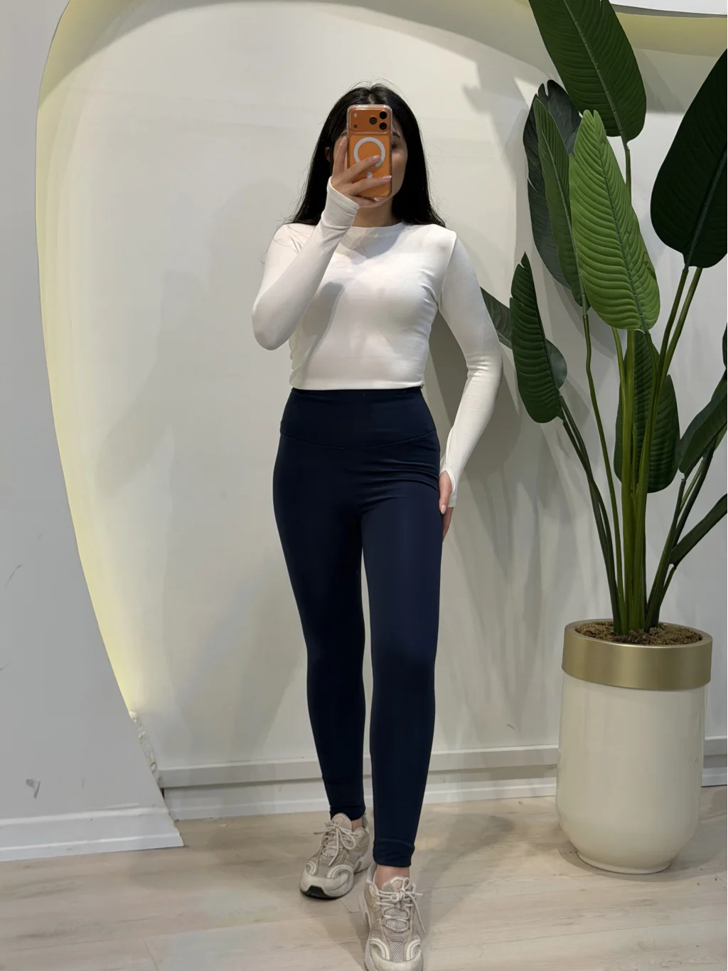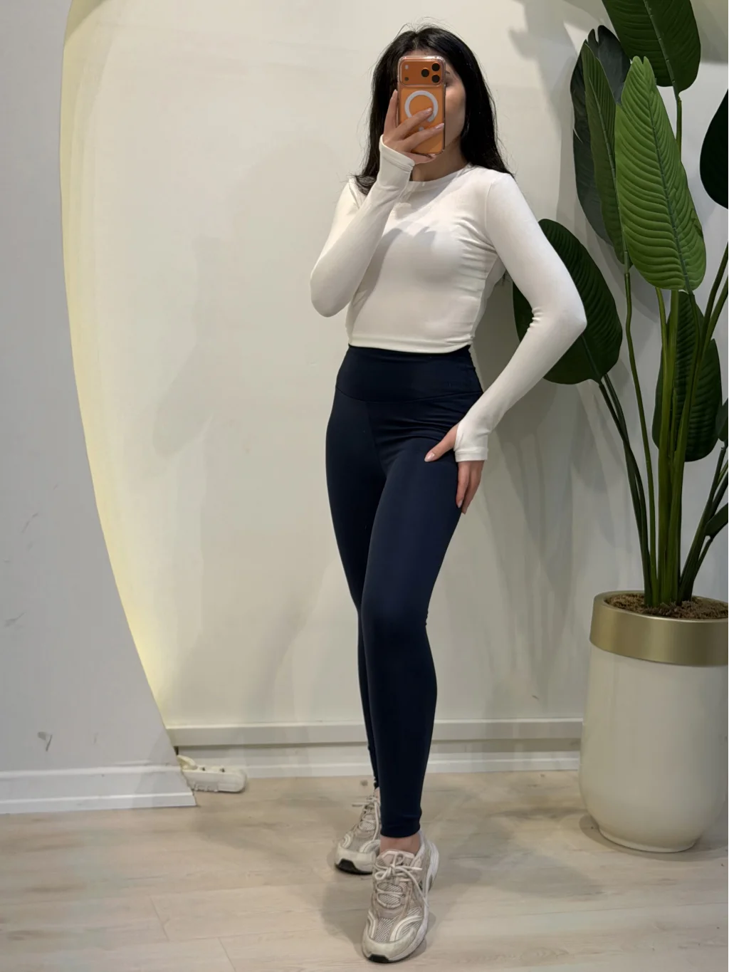 Replika lacivert yüksek bel toparlayıcı taytı ile şıklığı ve konforu bir arada yaşayın.